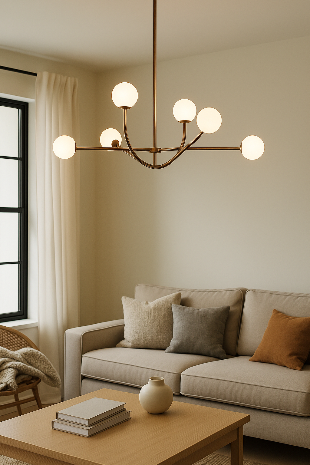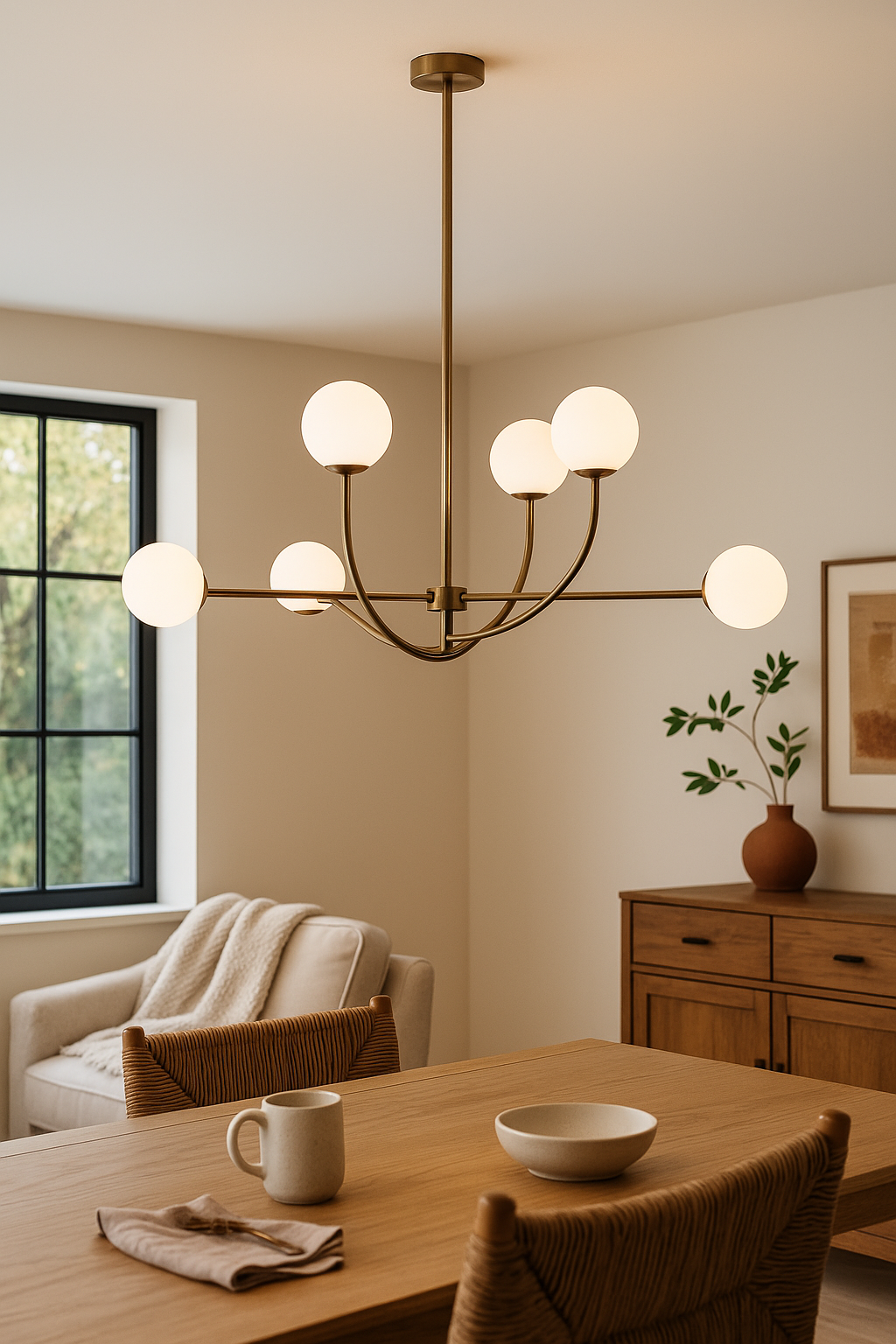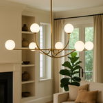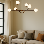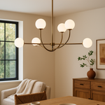 Verwandeln Sie jeden Raum in eine elegante Oase mit dieser beeindruckenden sechsarmigen Pendelleuchte, die durch ihr zeitloses Design sofort alle Blicke auf sich zieht. Die sanft diffundierte Beleuchtung schafft eine warme und einladende Atmosphäre, die perfekt für unvergessliche Dinner-Partys und gemütliche Familienessen geeignet ist. Mit ihrer raffinierten Silhouette wird sie zum absoluten Highlight Ihrer Einrichtung und verleiht jedem Raum einen Hauch von Luxus.